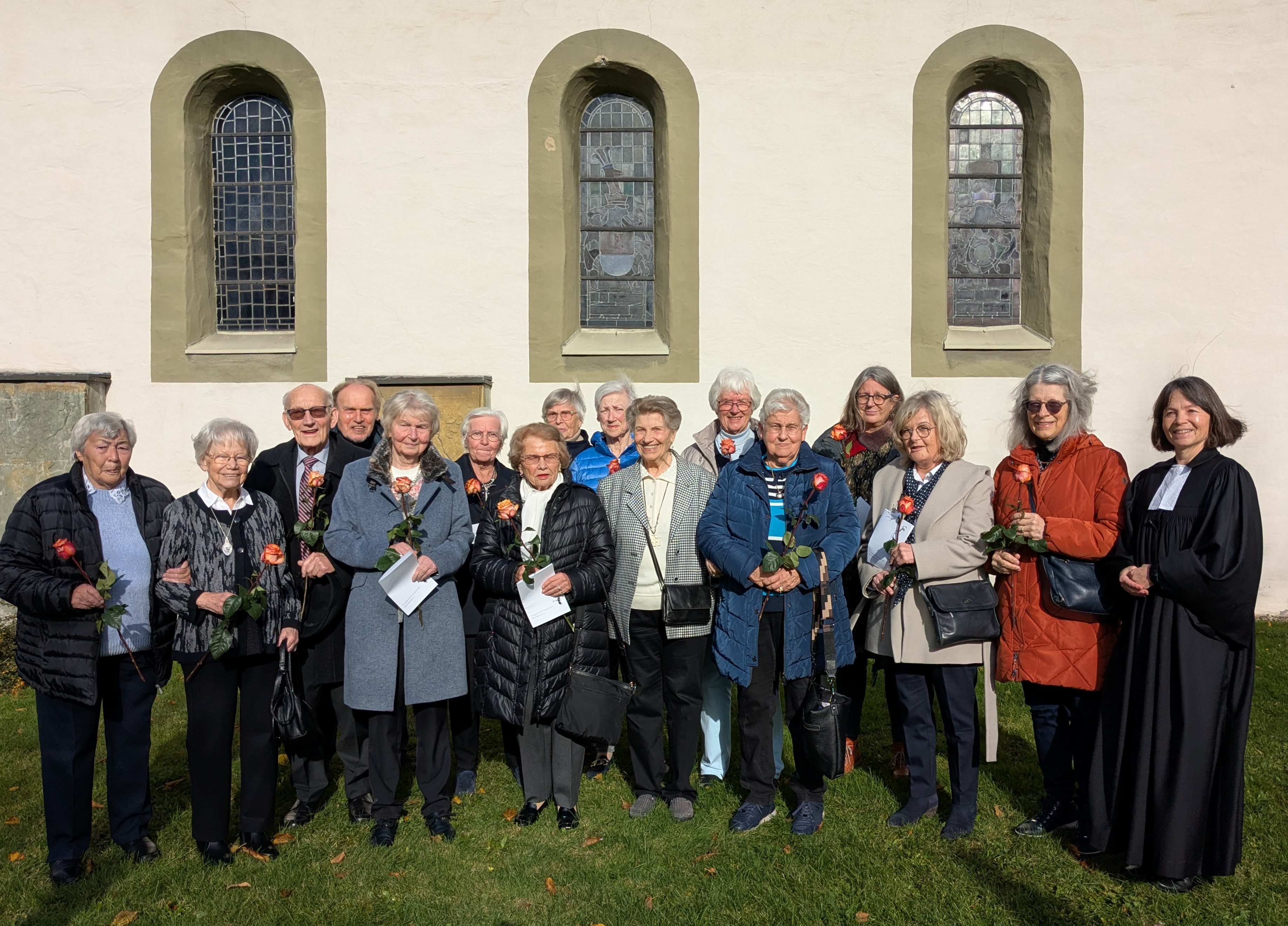 Am Sonntag den 2. November feierten 18 Jubilarinnen und 2 Jubilare ihre Konfirmationsjubiläum in der Pankratiuskirche Mark: die jüngsten feierten ihre Goldene Konfirmation nach 50 Jahren. Und sogar ein 80-jähriges Konfirmationsjubiläum wurde gefeiert: das eichene Jubiläum. Alle freuten sich über den feierlichen Gottesdienst, der von Kirchenchor und Posaunenchor musikalisch gestaltet wurde. Im Anschluss wurde noch bei Sekt und Kaffee angeregt miteinander erzählt.